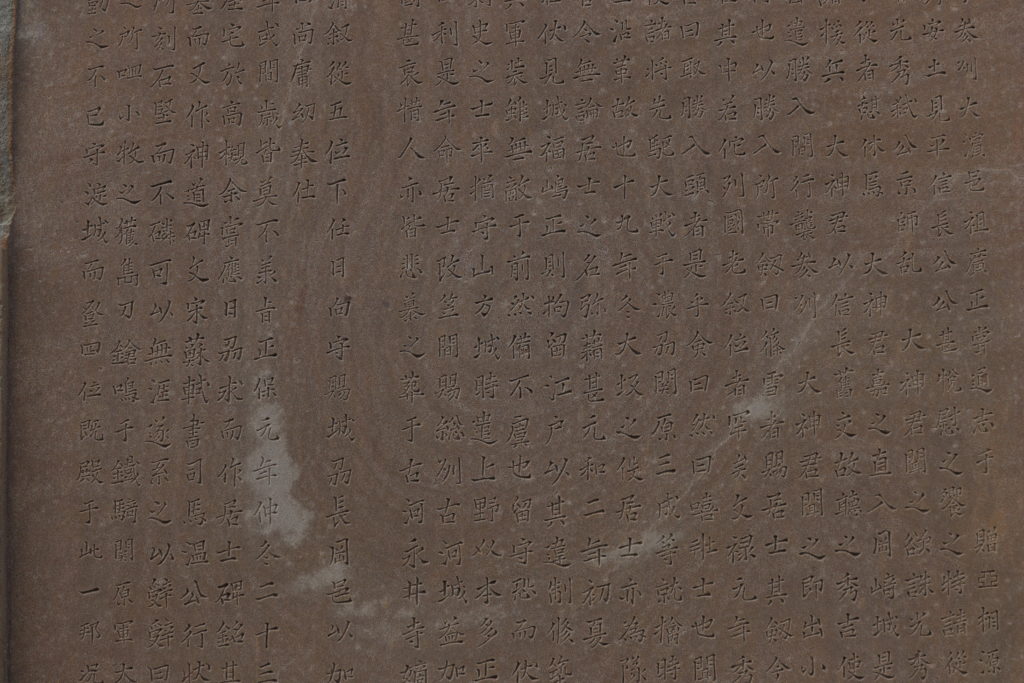 共拠金湯之要地。懿哉孝子友弟、増封爵以継嗣。其忠勤之不已、守淀城而登四位。既殿于此一邦、況経之以五事。常□□不忘戦、倉廩実