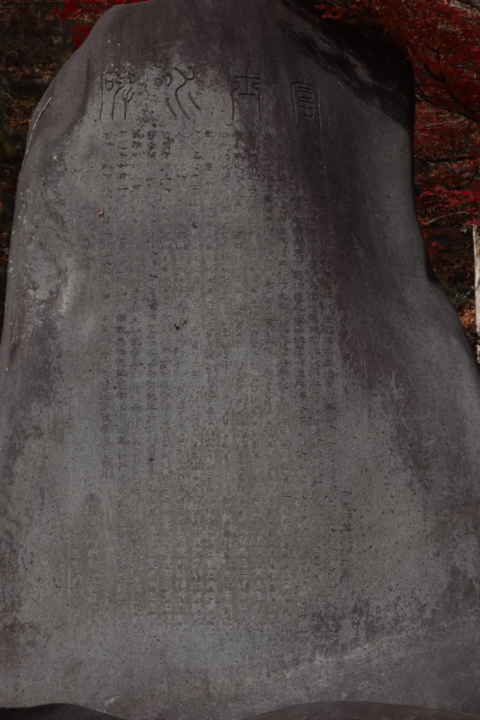 寛政九年ひのとのみ冬十ゆう二月、石を立てて君の功績をきざみ、信・甲・駿の民をして其の恵をわすること無からしめんと欲し、甲州鰍沢のかい、来りて余に辞をふ。余、嘗て其の地になればなり。銘に曰く、